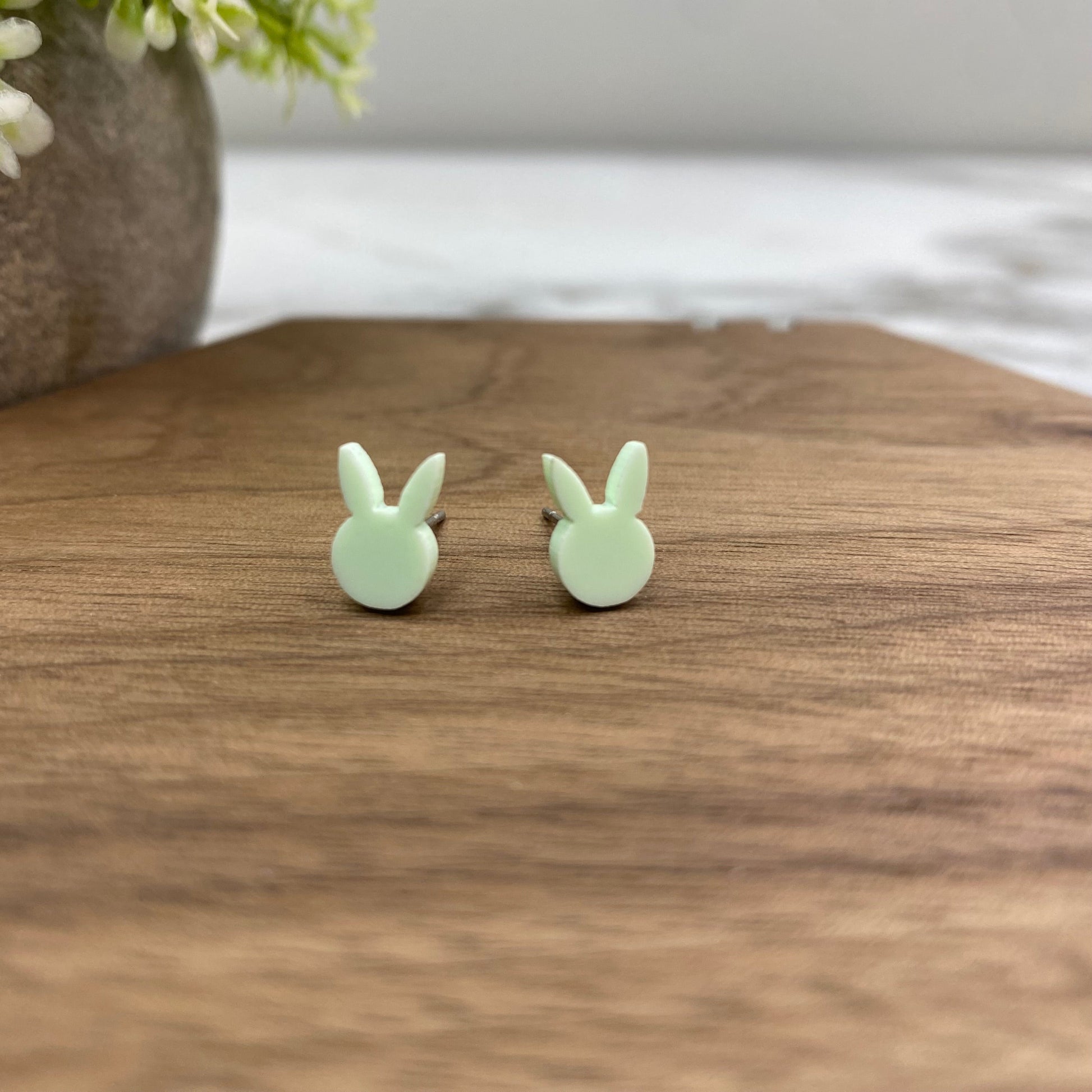 Acrylic Stud Earrings - Easter - Bunny Head - Light Green