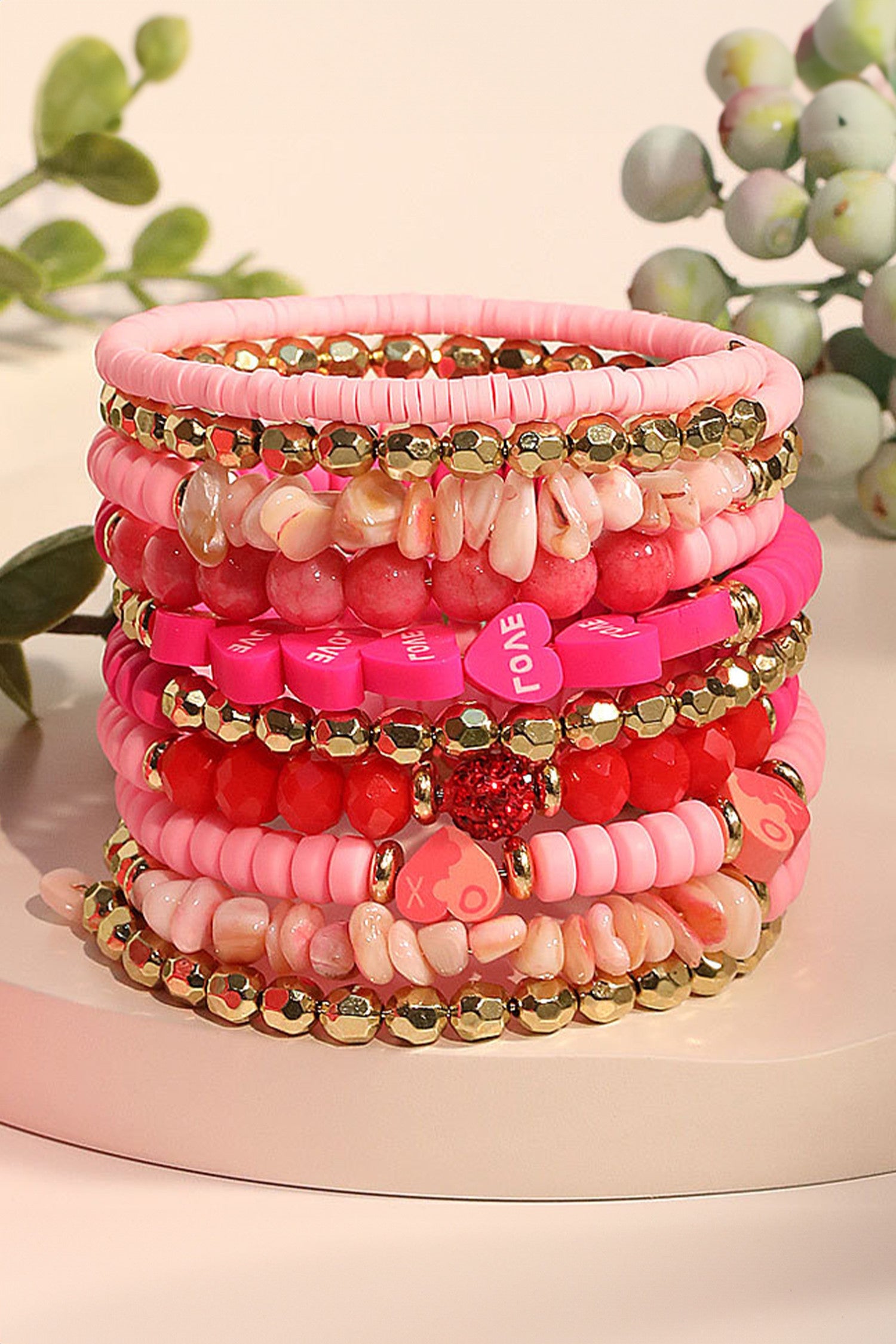 Celebrate love with this enchanting Valentine's bracelet collection. This 10-piece set combines delicate beads with a charming heart centerpiece, creating endless styling possibilities. Mix and match each bracelet individually for subtle everyday elegance, or stack them together for a bold, romantic statement. Perfect for gifting or treating yourself to wearable affection this season.