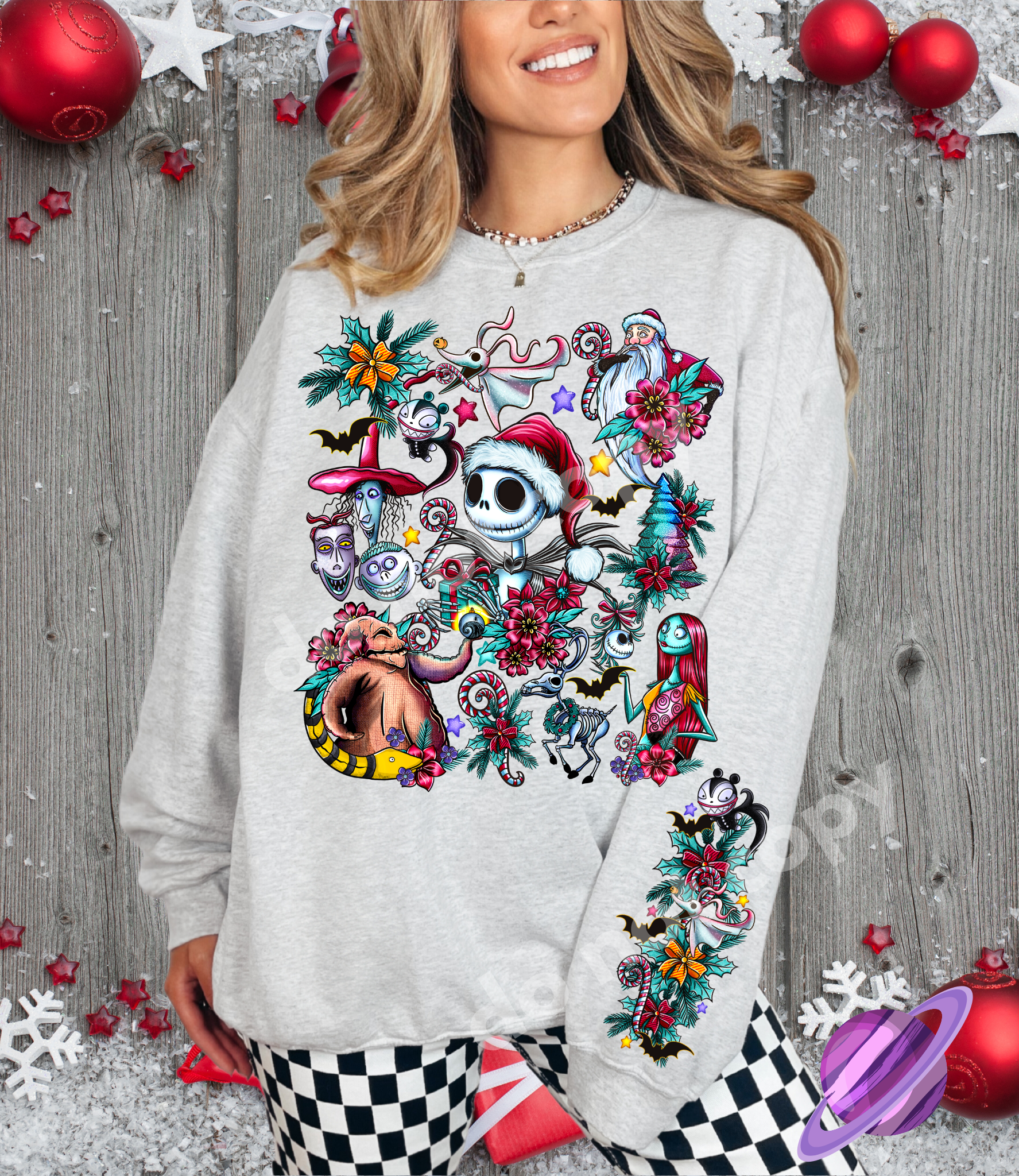 FESTIVE NBC- CREWNECK SWEATSHIRT W/ SLEEVE PRINT