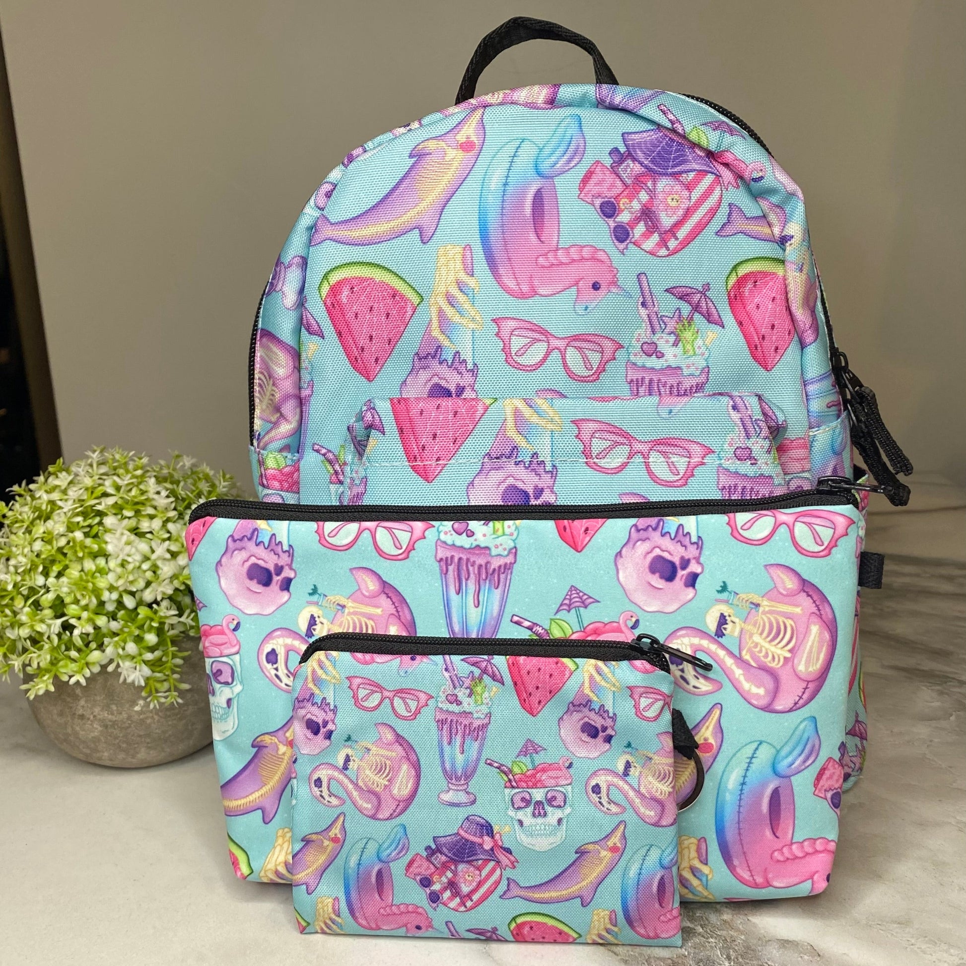 Mini Backpack, Pouch, & Mini Pouch Bundled Set - Skeleton Summer