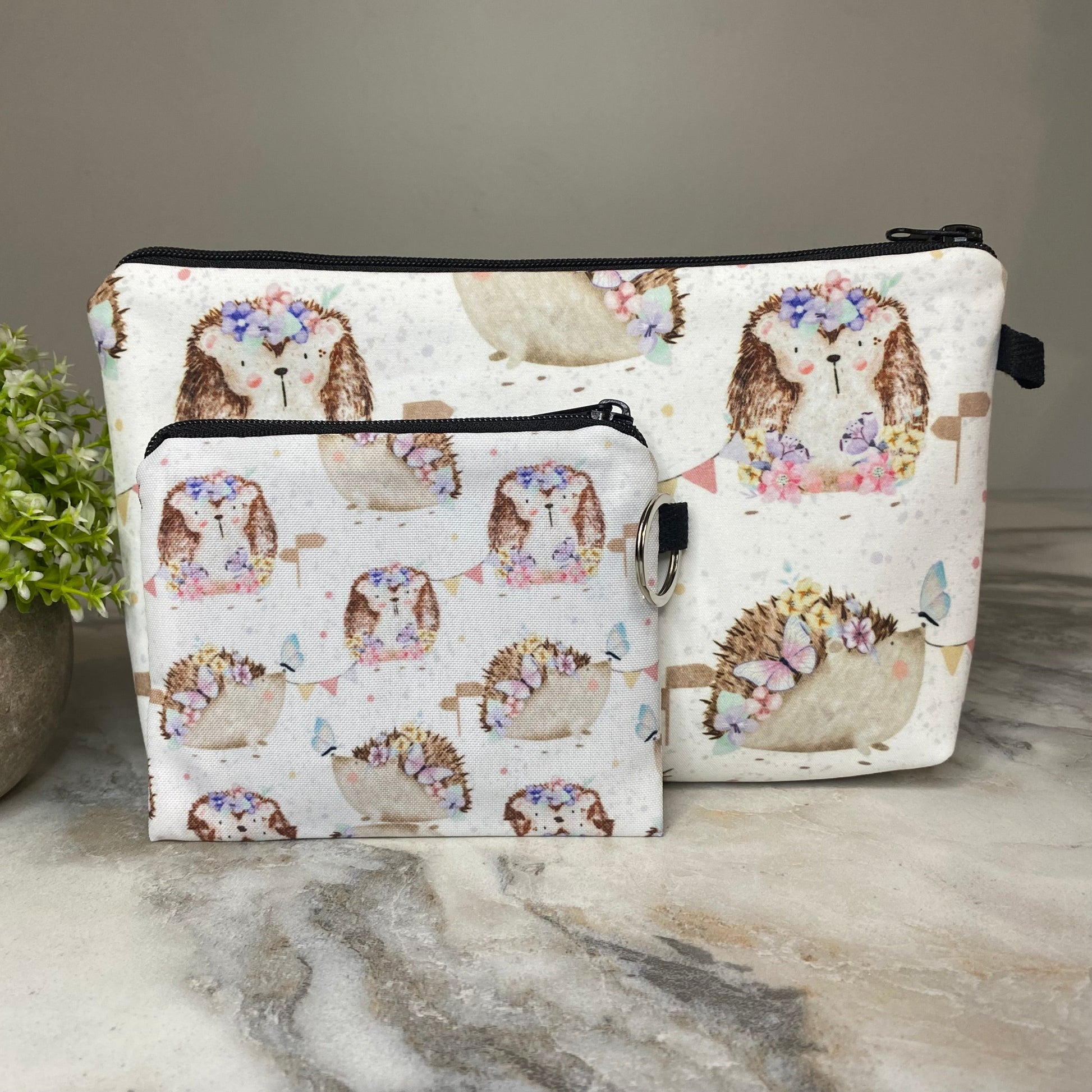 Pouch & Mini Pouch Bundled Set - Floral Hedgehog