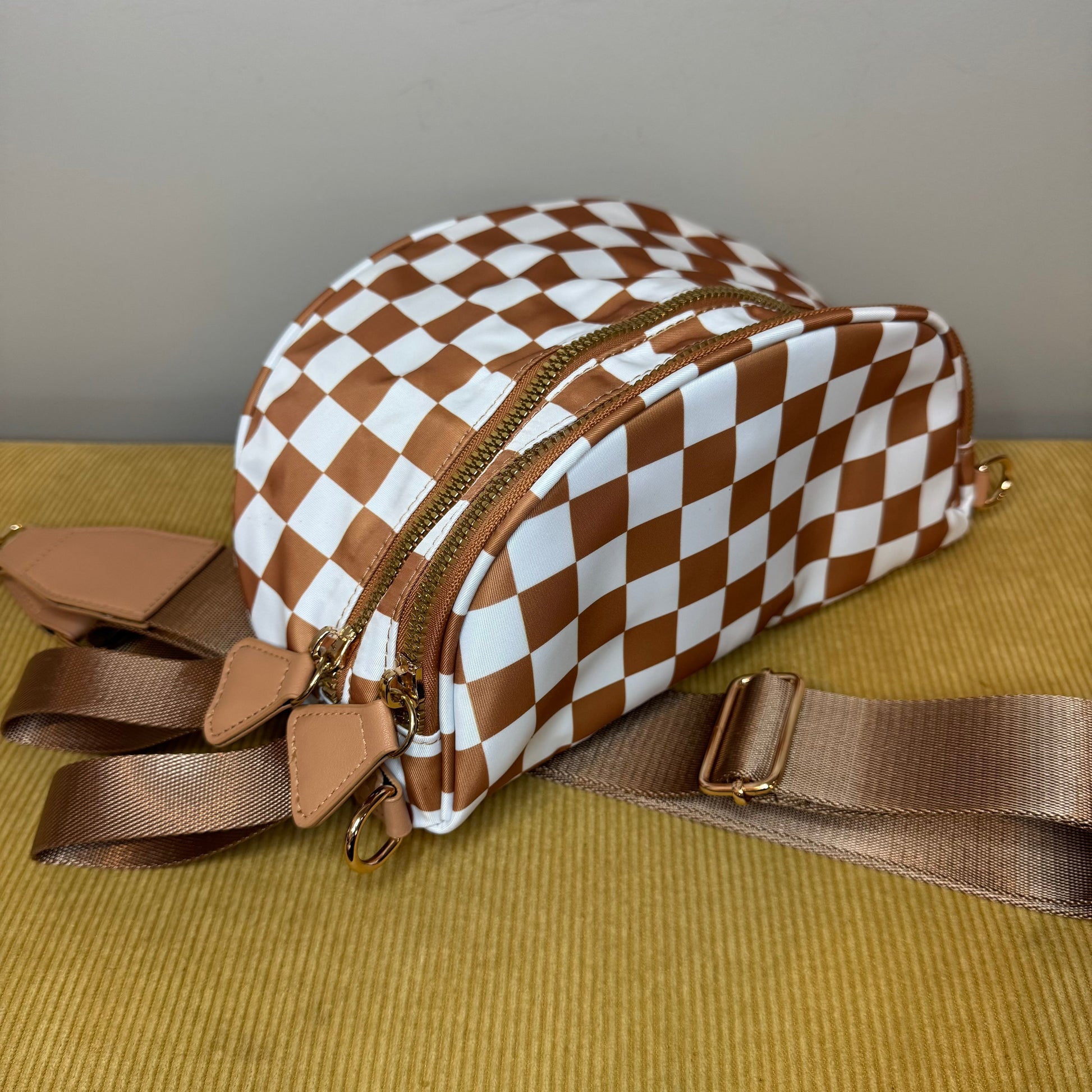 The Roni Nylon Crossbody - Checkered Camel